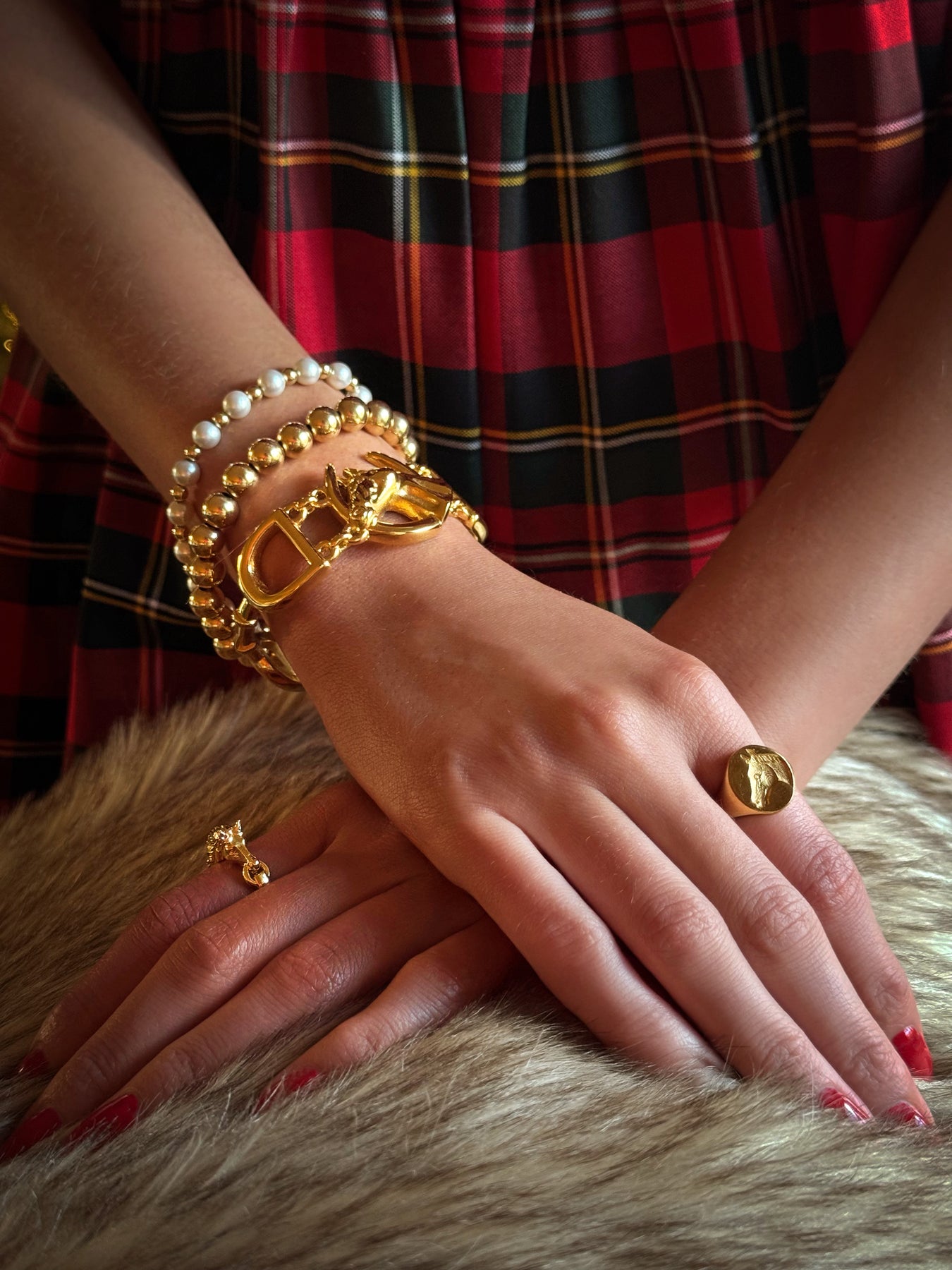 A tribute to timeless equestrian style and grace, The Ashland Oaks (Gold) features our exclusive Brownstone design: a sculpted horse head flanked by classic stirrup motifs. Crafted with 14k gold plating and a tarnish-resistant finish, this signature cuff delivers both heritage and polish. Inspired by the grace of the paddock and the prestige of tradition, it is a statement piece made to endure.